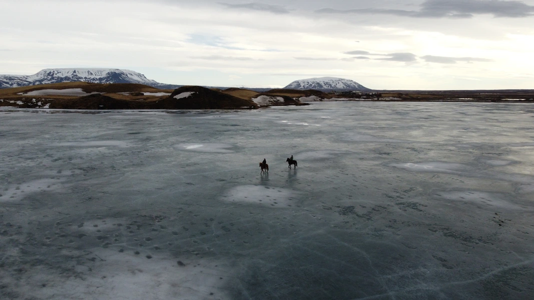 The lake Mývatn is among the largest lakes in Iceland covering 37 km2. The lake is shallow with average depth of 2.5 m and freezes over during the winter. This allows us to safely ride the frozen lake from February to March.